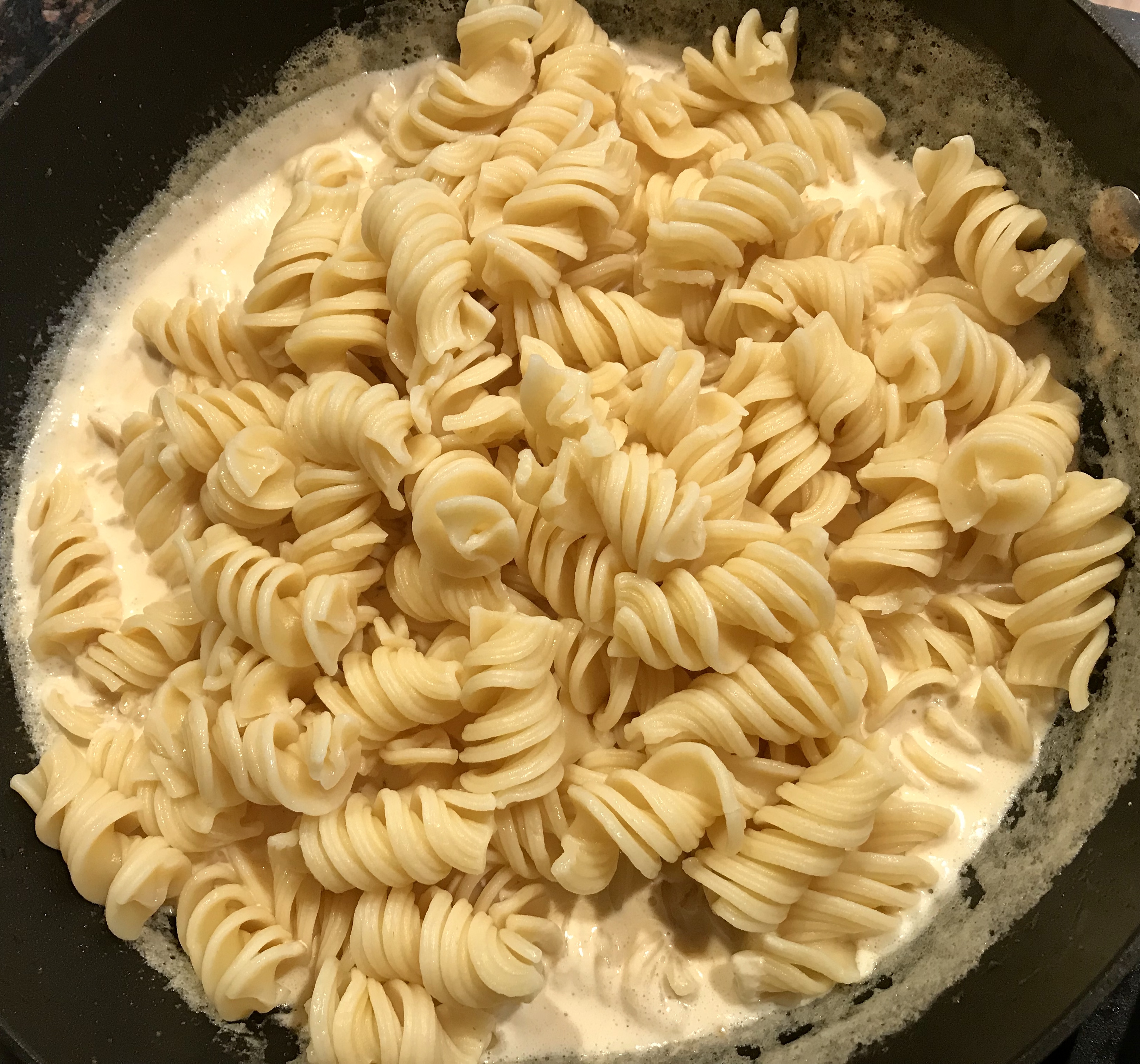 7. Mix everything to combine making sure everything is coated in the creamy sauce. Take off the heat.