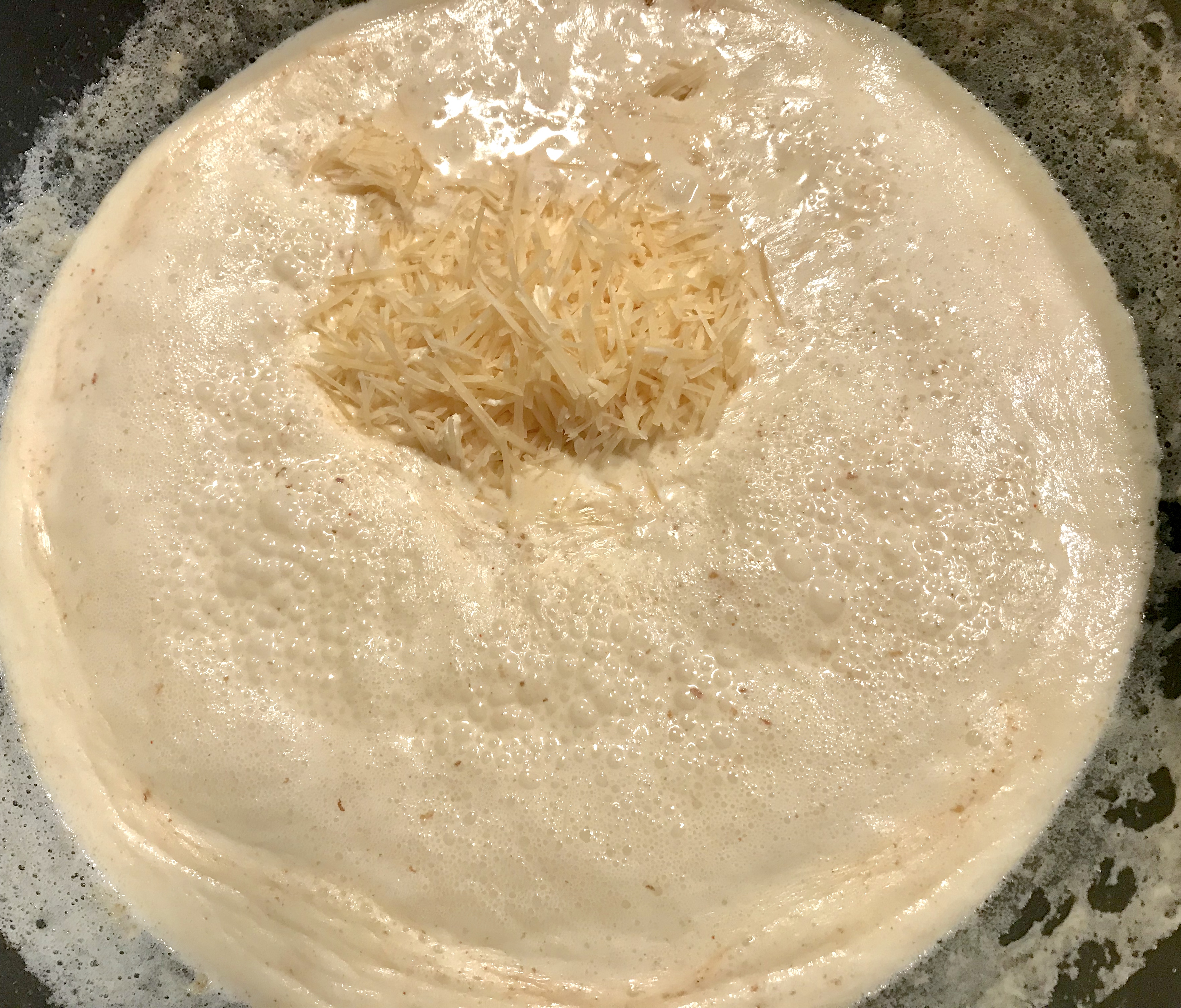 5. As soon as the heavy cream starts to simmer, add the parmesan cheese and stir to combine, then add the drained pasta.