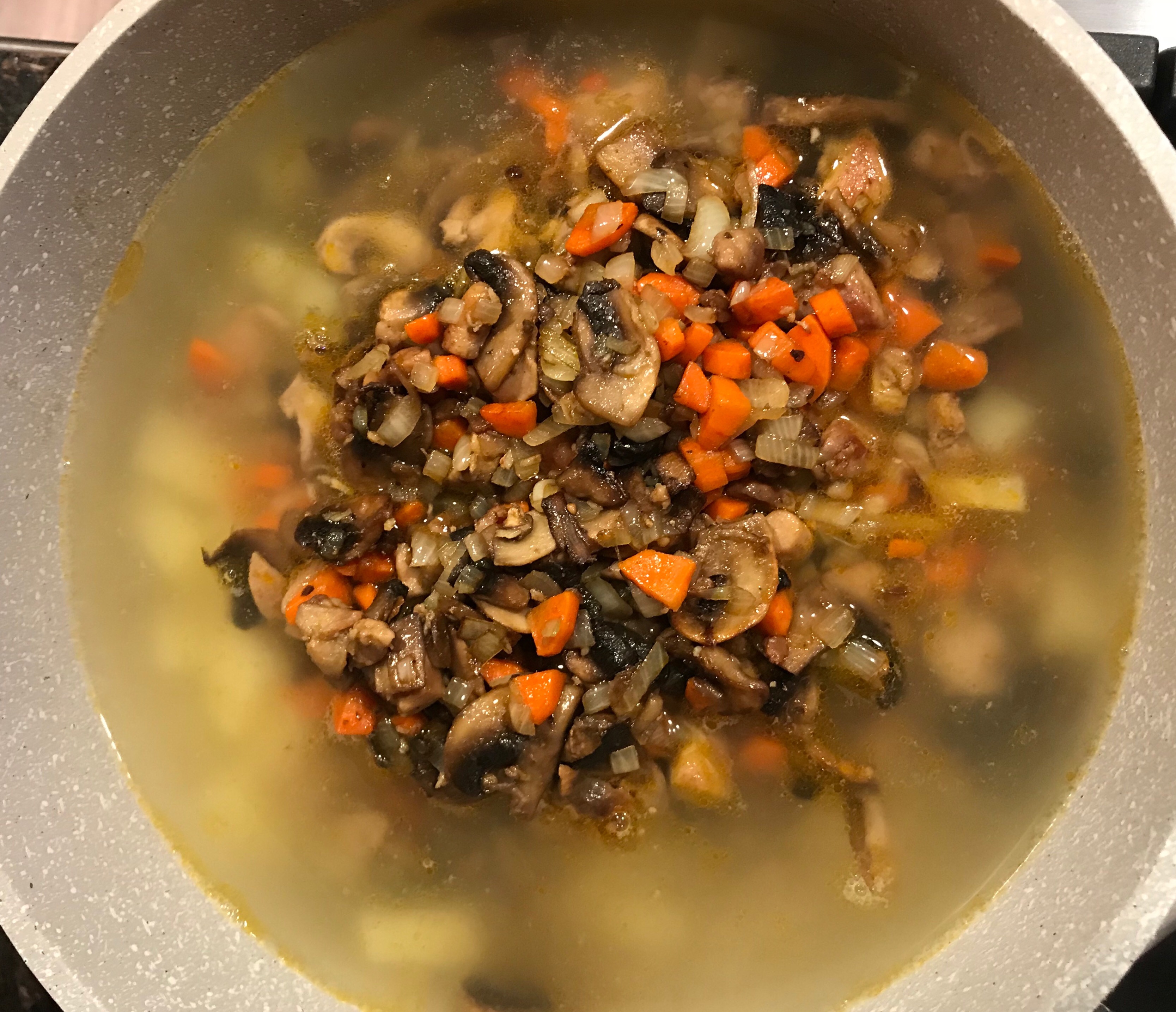 This soup is SO good! It contains so much in one bowl and everything goes together so well that even though this soup is filling, it makes you want to go back for seconds. It is my husbands all time favorite, whenever i ask what kind of soup i should make, i already know what he’ll say before he even answers 🙂 (talk about how well you know your spouse) I have been making this soup for years now but of course i eyeballed it all the time (my usual way of cooking) so time has come to write a recipe for it and share it. If you like chicken and mushrooms, you are going to love it!