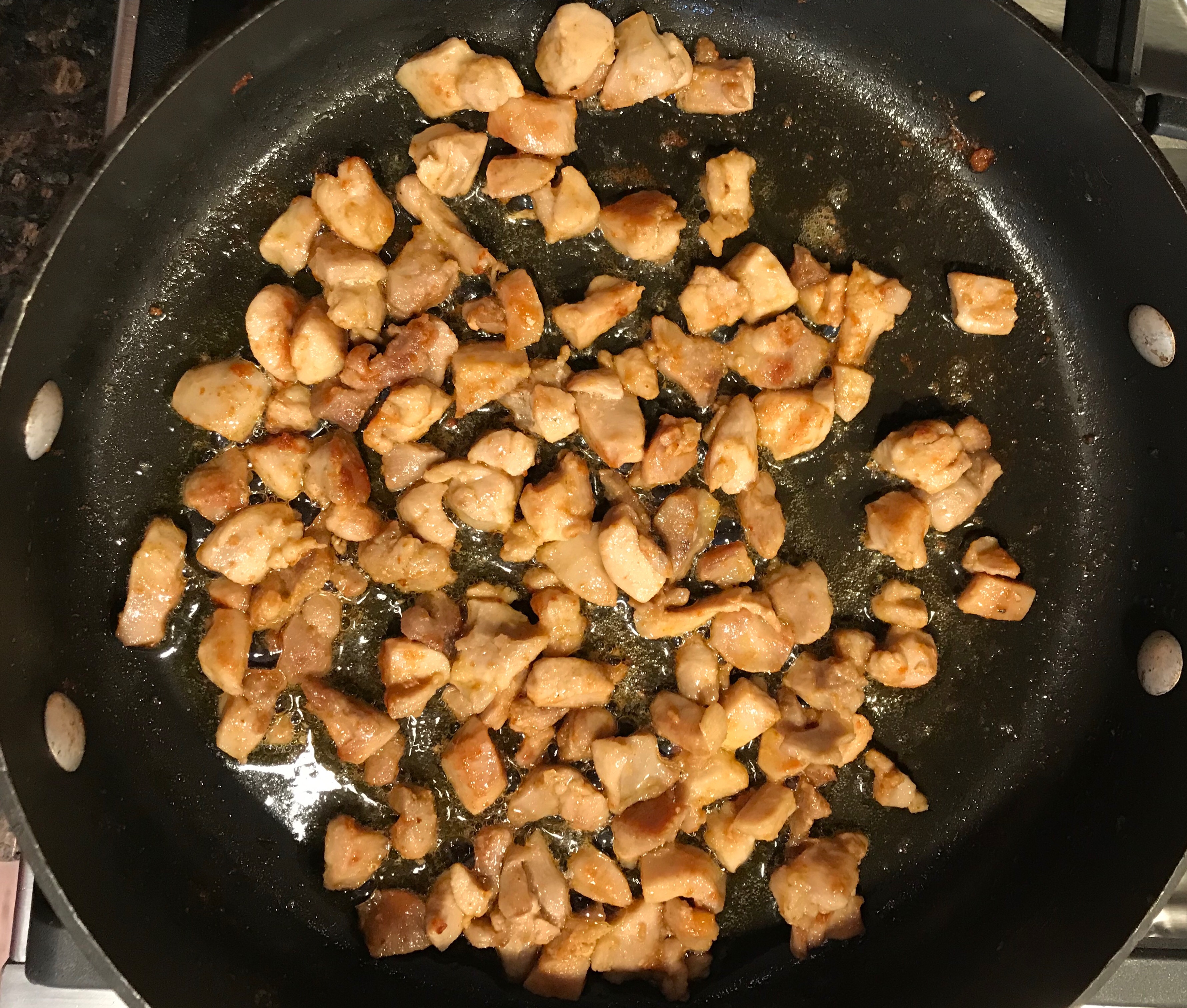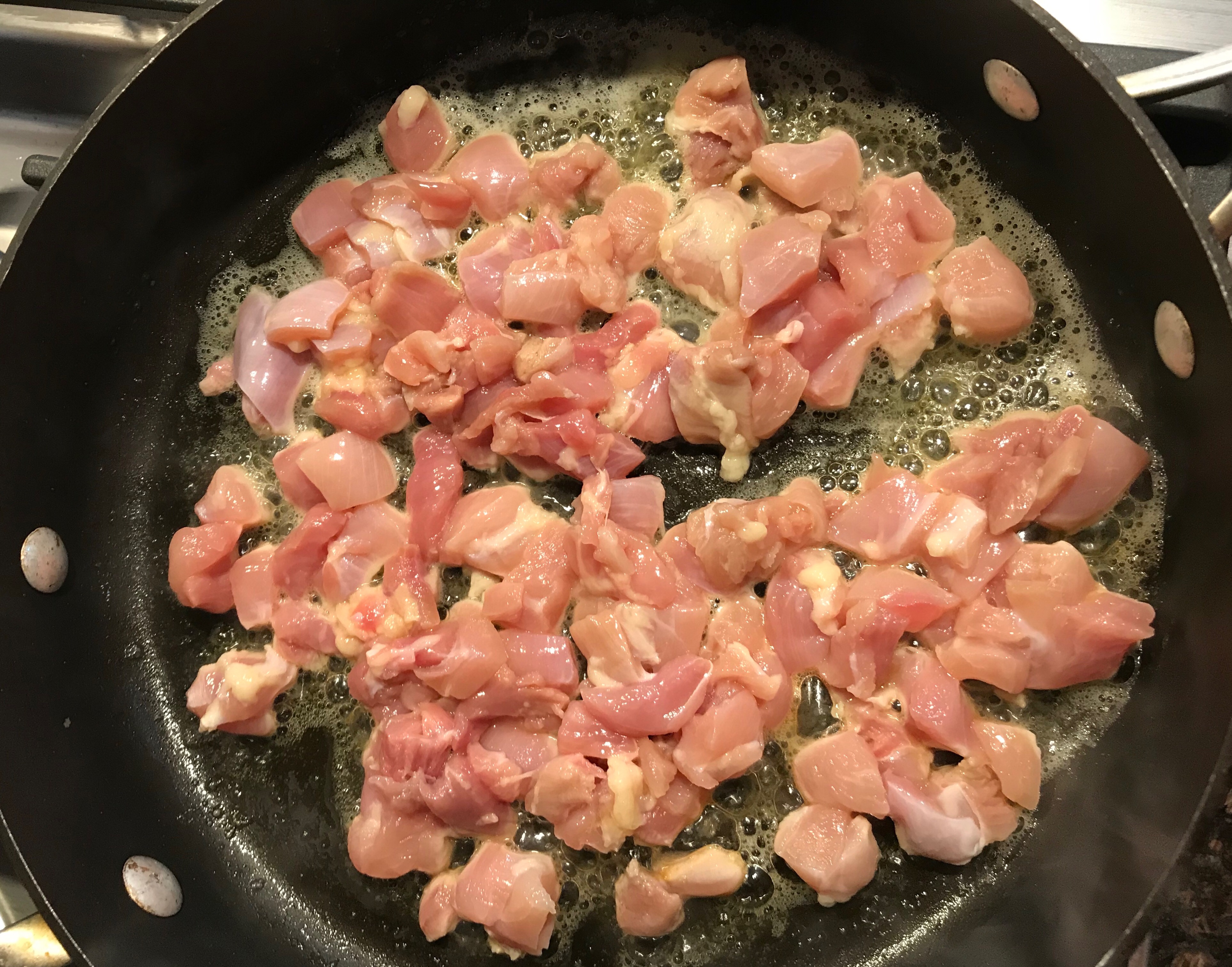 - 3-4 Chicken thighs (Cubed)