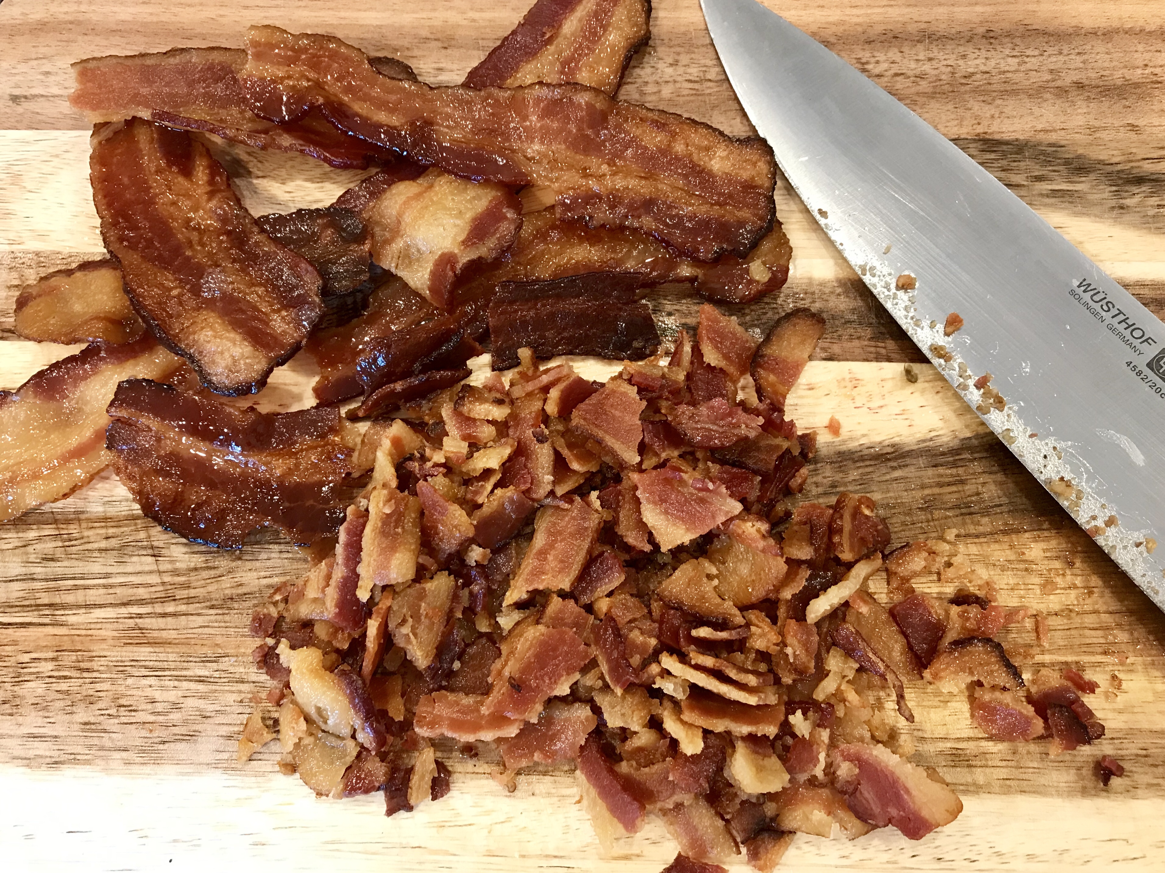2. Take the potatoes out of the oven and cook the bacon at 400F for 10-15min or until crisp. (or cook it on the stove top)