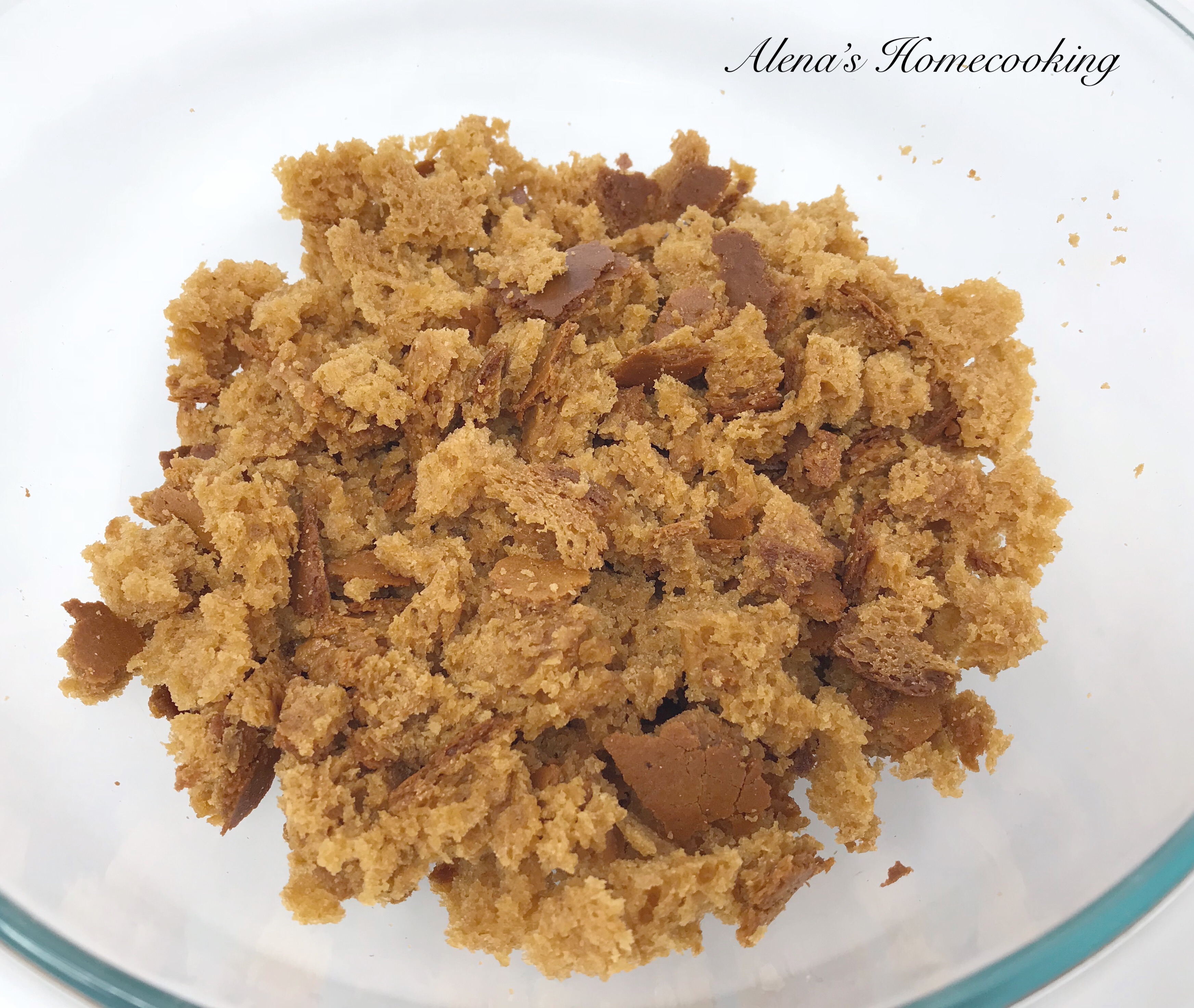 1.Rip the dough into small piece chunks (mine was about 3 cups)