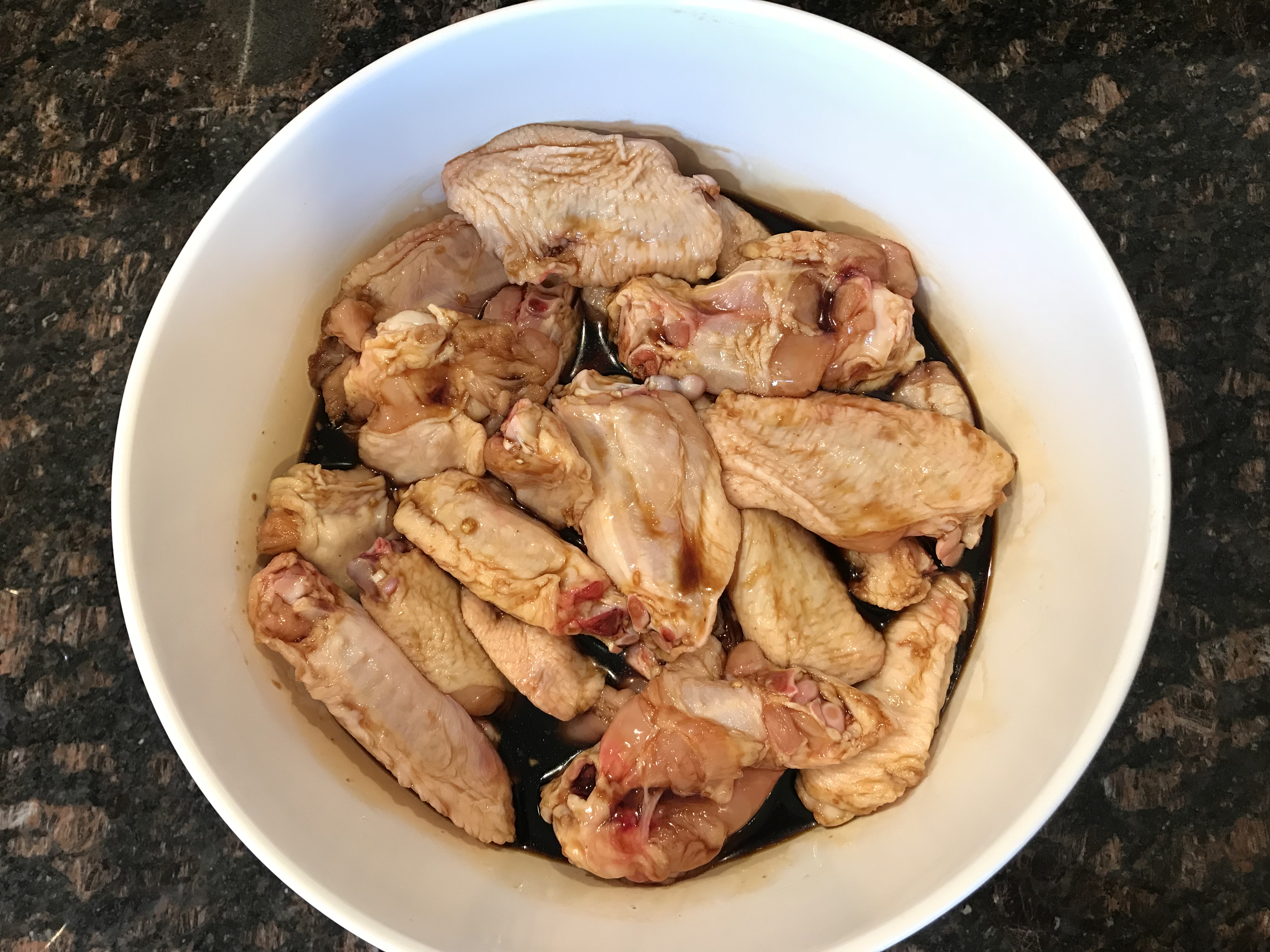 3.Pour the sauce over the wings and mix well and cover with foil or plastic wrap.