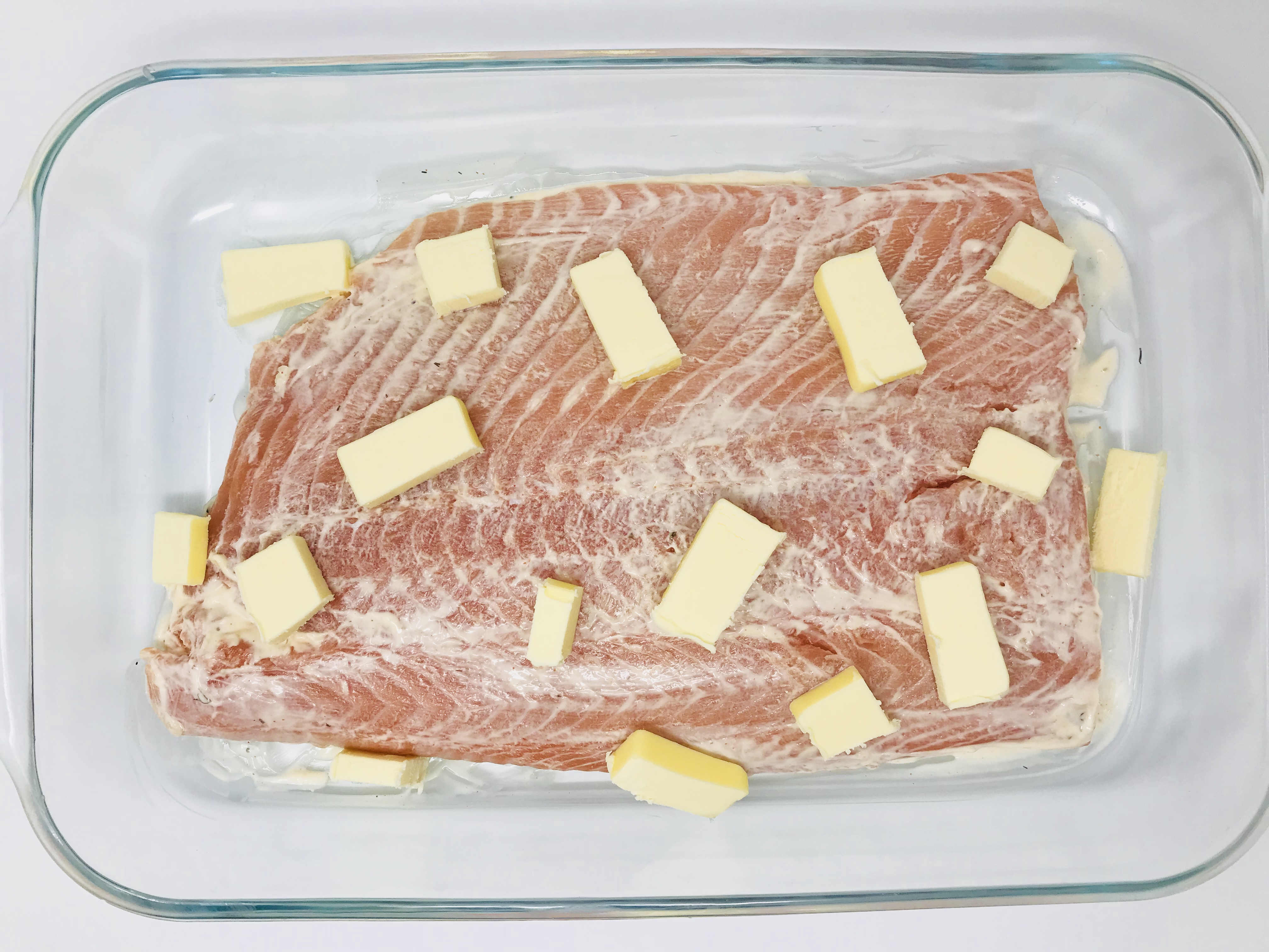 6. Cut up unsalted butter into smaller pieces and toss on top as well.