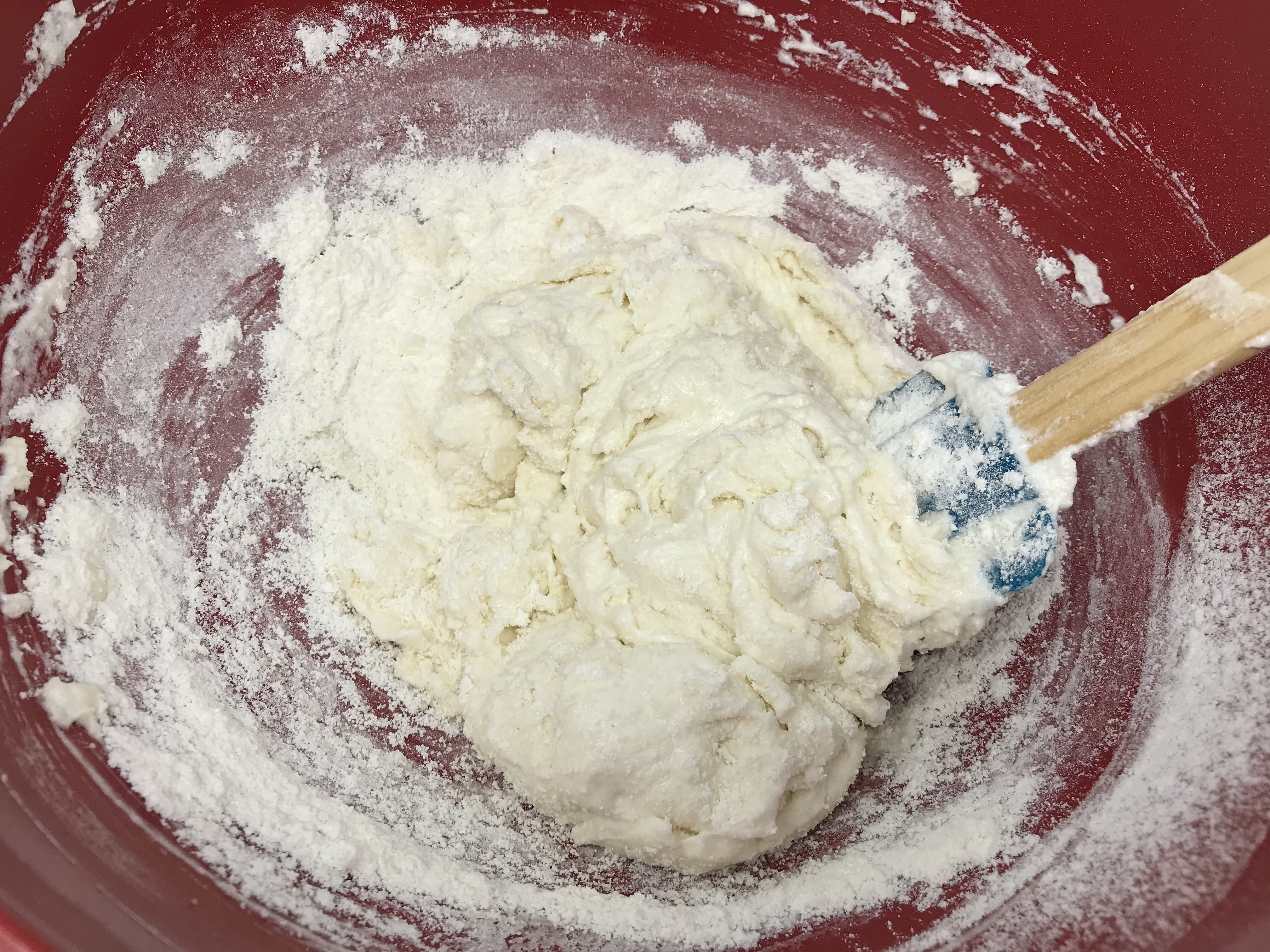 You know you need to stop mixing when your batter flows down from your spatula like a ribbon and the ribbon disappears in the bowl after about 10 seconds.