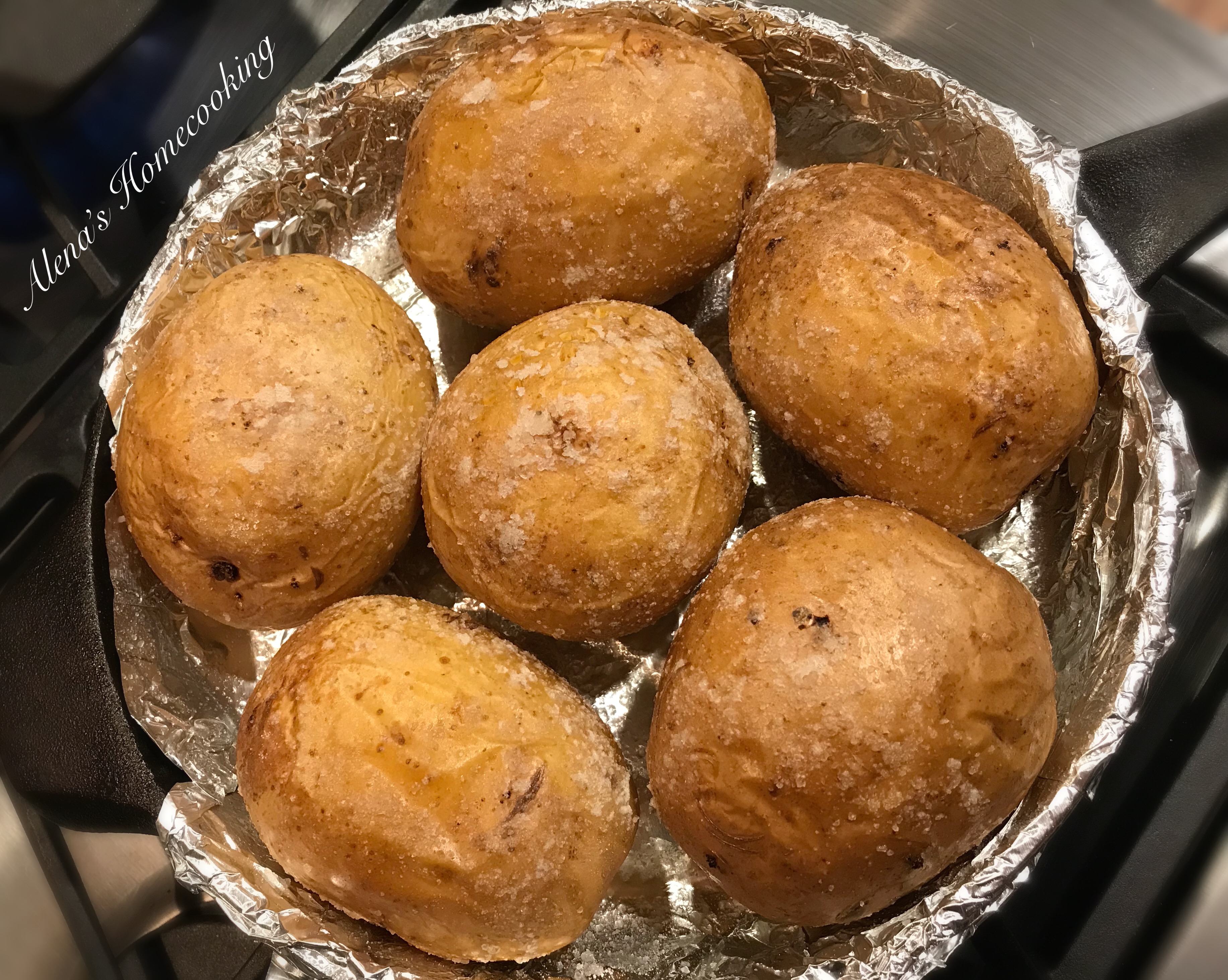 - Preheat your oven to 350F and bake uncovered until the potatoes are fork soft (about 60-90min)